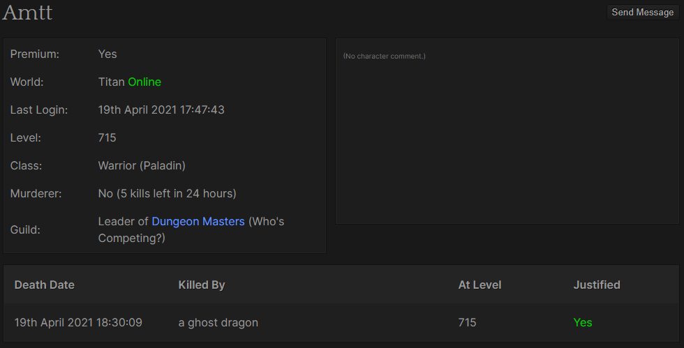 19th April 2021 15:56:07 Quoting Achilles: Not to burst the update bubble, but it seems like a HUGE waste of 3 months development. You added a castle which only 1% of the titan population will win/play (Because it's who ever does the most damage). It will also only be used for 1 month and 1 week due to how long the mid season took. (Ends june 1st) You changed boss for the worse, it was already stupidly annoying to spends 100's of hours at bosses in which only maybe 4 hours of those where actually killing a boss(You spend that amount of time because of the 1/1300 drop rates for items). You also maintained the task amounts meaning it now takes DOUBLE the amount of time to do a boss task. (I bet that wasn't "taken in to account" when adjusting the loot rate") It continues to baffle me that things like this are focused on when so much of the game is just broken or unsuable because of major balancing issues. Talent points are STILL capped at 486 when there is level 650's in the game (not even talking about titan). 80% of monsters don't get hunted due to them being absolute trash in terms of EXP and loot, you have people in parties getting 120%+ of people solo hunting, you have select classes doing 80-100% of the EXP/H of the other classes. You have people able to block NPC chats because there is no NPC window (also able to use makers to check if someone enters a spawn). You still have the horrible desync in game which makes hunting with directional spells horrid. The list goes on forever, focus on the core of the game before adding more bandaides. Ok I add that to book of exceses |